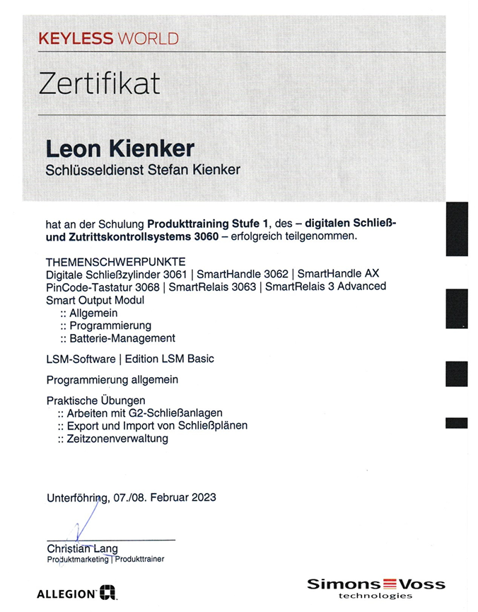 Simons Voss - Lehrgang